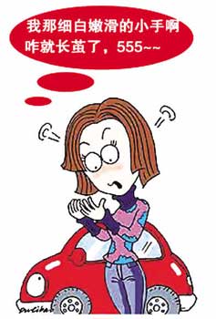 對策:現(xiàn)在一般的美容院都有護手霜,如果手臂確實粗大,建議做一些瘦臂護理,也有專門的瘦臂霜賣。長時間開車的車友,注意帶手套,如果已經(jīng)長了繭的,建議經(jīng)常到美容院做做保養(yǎng)。(老云)