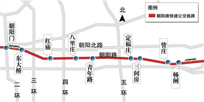 朝陽(yáng)路快速公交系統(tǒng)的建成開(kāi)通可以連接北京舊城、中央商務(wù)區(qū)、定福莊邊緣集團(tuán)以及沿線其它辦公、商業(yè)、居住區(qū),是市區(qū)東部一條高強(qiáng)度的公共交通客運(yùn)走廊。(郭鯤)