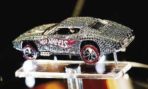 上個(gè)月,美國(guó)紐約,一輛以1∶64的比例制作而成的鉆石跑車亮相風(fēng)火輪(HotWheels)舉行的40周年慶典游行上。該鉆石跑車由著名珠寶設(shè)計(jì)師Jason Arasheben 設(shè)計(jì)而成,用在小車上的鉆石約有2700多顆,總量達(dá)23克拉,單鉆石的價(jià)值就達(dá)14萬(wàn)美元。