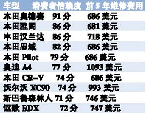 作為一種耐用消費品,車輛的耐用性(使用成本)已經(jīng)成為購車的主要衡量指標(biāo)。近日,美國財經(jīng)雜志《福布斯》評出了10大經(jīng)久耐用車型(Ten Toughest Cars)。評比標(biāo)準(zhǔn)涉及消費者信賴度,新車故障率,前5年維修費用及安全性能等綜合表現(xiàn),結(jié)果日系車大獲全勝。除了奧迪A4、沃爾沃XC90外,排名最耐用性前10名中有8款是日本車系,美國本土車型則全軍覆沒。其中本田一家就占了6款,奧德賽和雅閣分別位于排行榜的前兩位,這或許可以解釋日系車在全球范圍內(nèi)的成功。(王燦彬)
