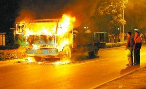 8月8日,海珠區(qū)南洲北路某小區(qū)內(nèi),一輛面包車剛啟動(dòng)就冒出了濃煙,隨后起火自燃,車主撲救無(wú)果,最終整輛車燒得只?蚣;8月14日,白云區(qū)廣從公路永泰廣場(chǎng)公交站路段,一輛白色寶馬私家車行車途中突然冒煙起火,車主一家4口人被迫棄車逃命,寶馬車隨后在高溫燃燒中爆炸,雖經(jīng)消防車全力噴射滅火,最后還是被焚燒成為一堆廢鐵……