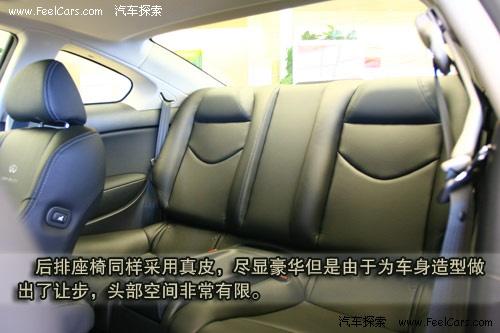 后排乘員可以通過靠背上角的拉手將椅背放到從而更輕松的進(jìn)入后排。在車內(nèi)時(shí),則可以按下副駕駛椅背側(cè)面的按鈕后可以將座椅整體前移,方便下車。雖然后排座椅的真皮用料同樣盡顯豪華,但由于為造型做出了犧牲,頭部空間非常有限。