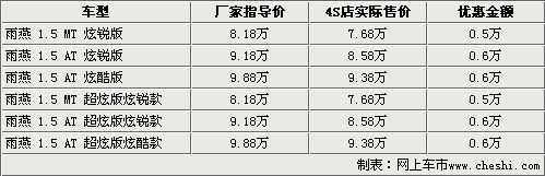 據(jù)長(zhǎng)安鈴木4S店銷售人員介紹,雨燕目前現(xiàn)車比較充足, 1.5L雨燕車型在北京最高可給出6000元的優(yōu)惠,相比前一陣優(yōu)惠金額增加500元。另外,倍受關(guān)注的雙色版雨燕目前的價(jià)格仍然沒(méi)有變化,并且均為訂單銷售,各店沒(méi)有現(xiàn)車。若想購(gòu)買需要提前預(yù)訂,訂金2000元,四周后提車。