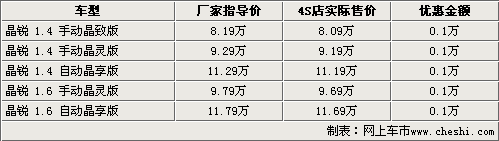 目前北京地區(qū)斯柯達(dá)店的晶銳車源比較充足,購(gòu)買晶銳車型的消費(fèi)者在可以得到1000元現(xiàn)金優(yōu)惠的同時(shí),還可以得到商家贈(zèng)送的汽車裝飾。銷售人員還表示,1.4部分車型需要提前預(yù)訂,預(yù)訂周期大約在最短2周到最長(zhǎng)8周不等。