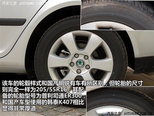 該車的輪轂造型和國產(chǎn)明銳有所區(qū)別,雖然尺寸一樣,但視覺上還是國產(chǎn)車型配備的輪轂看上去更大,也更漂亮。輪胎采用的是205/55R16的是普利司通ER300。和國產(chǎn)車型采用的韓泰K407輪胎相比好太多了,相信很多國產(chǎn)明銳車主看到這里都在暗自羨慕。