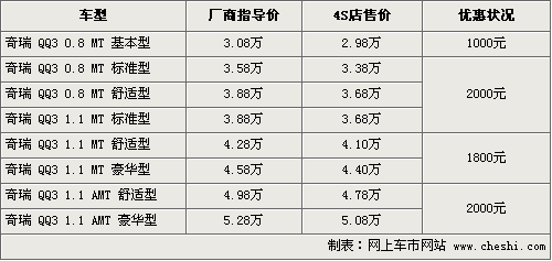 據(jù)4S店銷售人員介紹,目前QQ3的優(yōu)惠幅度在1000元-2000元之間,優(yōu)惠形式各4S店有一定的差別,主要以現(xiàn)金優(yōu)惠和贈(zèng)送裝飾為主。目前最QQ3最便宜車型價(jià)格已經(jīng)不足3萬(wàn)元,最為一款都市時(shí)尚代步工具而言,這樣的價(jià)格非常的實(shí)惠,F(xiàn)車方面,QQ3有多種顏色可選,消費(fèi)者可到店看車選購(gòu)。