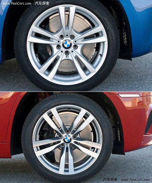 其他方面,前輪275/40R20、后輪315/35R20的高性能運動輪胎進(jìn)一步加強了魁梧車身的運動氣息,細(xì)心觀察還可發(fā)現(xiàn)X5M同X6M的20寸超輕輪轂的造型雖然相似但還是有些許不同。為了保證足夠的制動力和良好的視覺效果,四輪均采用了四活塞卡鉗的制動系統(tǒng)。