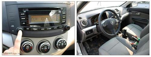 首先我們來(lái)看悅翔,其中控臺(tái)上部與下部用一條銀色的裝飾板分開(kāi),給人留下深刻的印象,運(yùn)動(dòng)型三輻式方向盤的手感和大小都很不錯(cuò),中控中央采用常規(guī)的矩形空調(diào)出風(fēng)口,而兩側(cè)則采用時(shí)尚的圓形出風(fēng)口,這無(wú)疑和馬自達(dá)3布置方式是完全相似的。悅翔空調(diào)風(fēng)量調(diào)節(jié)旋鈕的手感不錯(cuò),其他控制按鈕也都是按鍵設(shè)計(jì),大方時(shí)尚,下方的儲(chǔ)物盒可以順手放一些雜物。