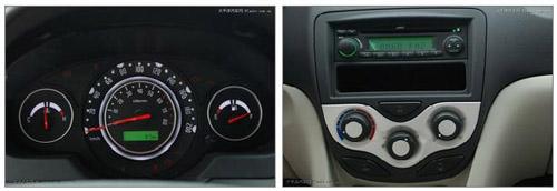 不得不提的亮點(diǎn)是,同悅復(fù)合式的自發(fā)光儀表盤無(wú)需特意去開(kāi)啟,光線暗下來(lái)時(shí)就會(huì)自然變亮,外圈為時(shí)速表,內(nèi)圈為轉(zhuǎn)速表,左右兩側(cè)分別為水溫表和油表,非常漂亮,沒(méi)有像一些同級(jí)小型車那樣取消水溫表令人感到欣慰,這一點(diǎn)上確實(shí)體現(xiàn)了自主品牌的厚道。同悅儀表樣式效果都和凱美瑞很相像,充滿了立體感受。不過(guò)精細(xì)度程度仍然表明這只是經(jīng)濟(jì)自主小車。4個(gè)圓形空調(diào)出風(fēng)口比悅翔更時(shí)尚,CD下的儲(chǔ)物格也充分利用起來(lái)。
