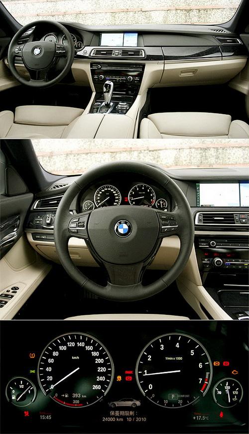 排檔設(shè)計(jì)也由上一代的方向盤(pán)橫置排檔桿設(shè)計(jì),改回中央排檔桿樣式的Steptronic六前速手自一體,棱角排檔桿造型也與新家族設(shè)計(jì)同步,結(jié)合新一代iDrive操控接口、電子式駐車(chē)、動(dòng)態(tài)駕馭控制系統(tǒng)與ESP off按鍵。與750Li相同的三幅造型方向盤(pán)雖然風(fēng)格沿用,但是多功能按鍵的排列則改為利于雙手拇指操作的左右水平對(duì)稱(chēng)設(shè)計(jì),不僅如此,五代7系儀表改為全液晶屏幕顯示,不僅在按壓電門(mén)啟動(dòng)鍵后,清晰呈現(xiàn)豐富的儀表信息,液晶化的顯示優(yōu)勢(shì),也讓行車(chē)信息的圖象顯示功能更為精進(jìn),成為駕馭接口的進(jìn)化重點(diǎn)。