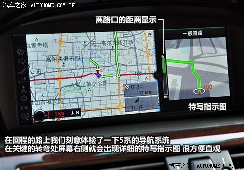 導航系統(tǒng)也是我們比較關(guān)心的內(nèi)容,在回程的路上我們將公司設(shè)置為目的地全程進行語音導航。在左側(cè)主屏幕的右下方我們可以看到系統(tǒng)計算出的到達目的地的時間和距離,而每到需要轉(zhuǎn)彎或進出主輔路時,右側(cè)的小屏幕都會有具體的路線指示,同時旁邊有到達路口的精確距離顯示,視覺指引非常清晰。但是語音提示方面iDrive系統(tǒng)做的就不是很完美。雖然路上都是語音提示,比如“前方500米左轉(zhuǎn)”之類的,但真正到達路口時卻沒有任何語音提示,如果不熟悉路線只能通過看屏幕才能知道的確是在這里轉(zhuǎn)彎,但一般路口都是車多人雜的地方,在這里分心看屏幕的話可能會有安全隱患,這方面iDrive系統(tǒng)還有考慮的不太周全。