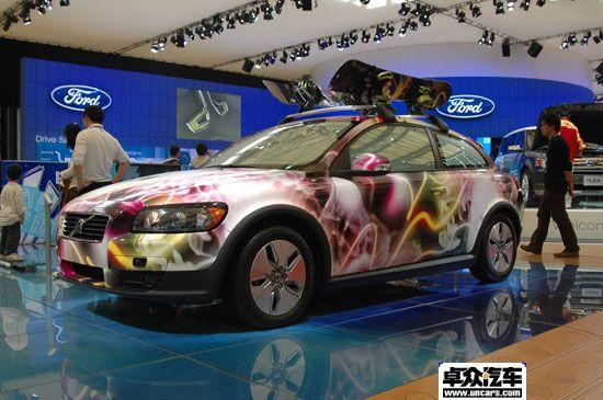 這款車造型和普通的C30沒什么區(qū)別,不過車身顏色采用了夢(mèng)幻般的色彩涂裝,非常好看。此外,車窗和擋風(fēng)玻璃也能投影各種影像,配合車身顏色讓這款車看起來非常炫動(dòng)。很好的契合了C30以及沃爾沃汽車年輕、時(shí)尚、激情的形象。