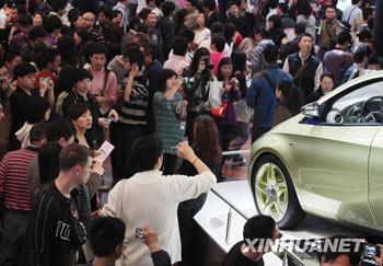 4月25日,2009上海國際車展開幕后迎來首個(gè)雙休日,當(dāng)日接待參觀者突破13.6萬人次,展車被“淹沒”在“人!敝。新華社發(fā)(吳長(zhǎng)青 攝)