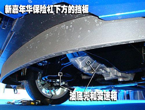 長(zhǎng)安福特新建年華和廣豐雅力士相同,沒(méi)有設(shè)計(jì)發(fā)動(dòng)機(jī)和變速箱下方的護(hù)板,不過(guò)前保險(xiǎn)杠下緣突出的擋板同樣起到了發(fā)動(dòng)機(jī)油底殼和變速箱底殼的第一道防線的作用。