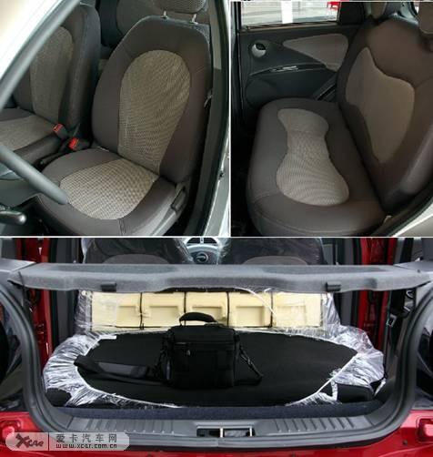 座椅方面瑞麒M1采用的是絲織物座椅,駕駛席采用手動(dòng)四向調(diào)節(jié)方式,前后排座椅寬大,乘坐舒適。后排座椅提起調(diào)節(jié)按鈕,可以講整個(gè)后排座椅靠背放倒,提高后備箱的儲(chǔ)物空間。