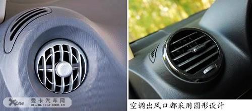 瑞麒M1的前端空調(diào)出風(fēng)口也采用的圓形,不過他的圓形好像是360度的,能更全面的為駕駛者帶來需要的溫度。熊貓的出風(fēng)口也很實(shí)用,并且外邊鍍鉻用料十分講究,這一點(diǎn)他們也很出眾。