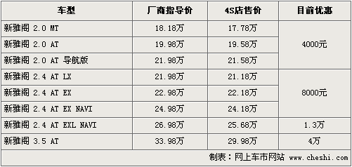 據(jù)4S店銷售人員介紹,目前購(gòu)新雅閣2.0排量車型可優(yōu)惠現(xiàn)金4000元,2.4排量可優(yōu)惠8000元,2.4EXL導(dǎo)航版可以優(yōu)惠1.3萬(wàn)元。而3.5排量最高降幅達(dá)到了4萬(wàn)元。相比4月份的優(yōu)惠幅度,價(jià)格并沒有太多起伏。目前2.0排量多款車均需要預(yù)訂,訂金為2000元,半個(gè)月時(shí)間便可以交車。2.4L供車較為充足,4S店主要有黑色、銀色等款可供選擇,同時(shí)各店均能夠提供試乘試駕服務(wù)。
