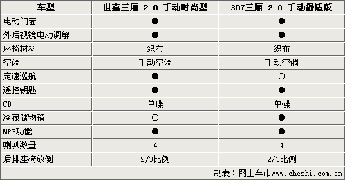 由于兩款車型都是2.0的低配車型,所以在配置方面沒有太突出的地方。電動門窗、外后鏡電動調節(jié)、遙控鑰匙和后排座椅放倒功能都是它們的標配。但是兩款車型還是各自都有各自的特點,雪鐵龍世嘉三廂配備了定速巡航,可以大大減少駕駛員長途駕駛的疲勞。標致307則配備了具有冷藏儲物功能的手套箱。這些配置在同級別同價位的車型中都是很少見到的。