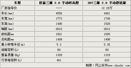 東風雪鐵龍世嘉三廂和標致307同屬于A級轎車,在車身尺寸方面世嘉三廂車長和車寬方面都要優(yōu)于標致307尺寸。兩款車型的軸距均在2600mm左右,該尺寸在同級別車型中比較少見,完全可以滿足一般乘客的使用需求。307的車身高度達到了1526mm,這一點保證了其內部高度的寬敞。標致307的前后輪距都要大于世嘉三廂,意味著標致307操控性要優(yōu)越于雪鐵龍世嘉。
