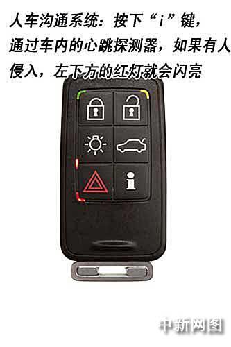 人車溝通系統(tǒng)(PCC)是沃爾沃汽車公司所獨(dú)的,將PCC隨身攜帶,在您到達(dá)車邊時(shí)汽車將自動(dòng)開(kāi)鎖。按下儀表盤上的按鈕即可啟動(dòng)發(fā)動(dòng)機(jī)。按下信息按鈕,就可以知道車門鎖閉狀態(tài)以及車內(nèi)的各個(gè)系統(tǒng)是否正常關(guān)閉。一個(gè)很特殊的設(shè)置是,根據(jù)沃爾沃工作人員的演示,按下“i”鍵,就可以通過(guò)安裝在車內(nèi)的心跳探測(cè)器知道車內(nèi)是否有人,防止乘客被誤鎖或車輛被非法侵入的情況。(陳鑫)