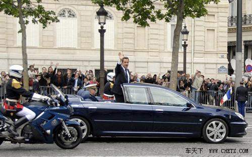法國(guó)總統(tǒng)薩科齊的座駕是一輛豪華版標(biāo)致607,全車(chē)超過(guò)5米,配備由鋼板和玻璃材質(zhì)組成了自動(dòng)折疊車(chē)頂。這輛專門(mén)為總統(tǒng)設(shè)計(jì)的標(biāo)致607 Paladine在法國(guó)Cerizay的埃利茲(Heuliez)工廠誕生。