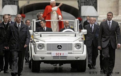 應(yīng)教皇本人的要求,奔馳公司為其專門生產(chǎn)了一輛敞篷版的白色G500教皇專用車,該車的研發(fā)過程歷時兩年。教皇將用這輛梵蒂岡專用白色敞篷車在圣彼得廣場進行慣常的周三賜見活動。