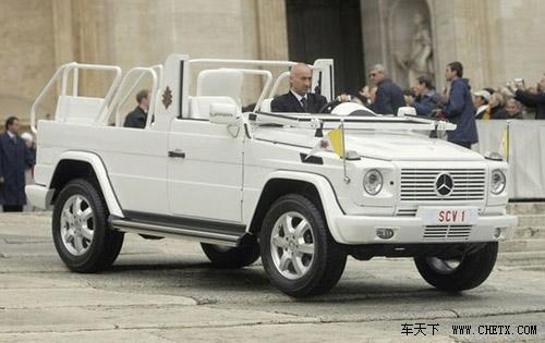 當(dāng)然,富有的教皇有許多奔馳的車,除G500敞篷外,還有M級、S級特別防護版,而且每一輛都價值不菲。