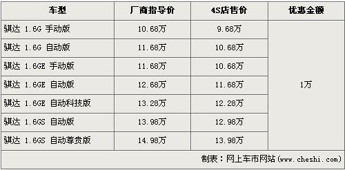 據(jù)東風(fēng)日產(chǎn)4s店銷售人員介紹,目前東風(fēng)日產(chǎn)騏達(dá)全系優(yōu)惠1萬(wàn)元。經(jīng)優(yōu)惠優(yōu)惠后,入門級(jí)的1.6G手動(dòng)版售價(jià)下降到了9.68萬(wàn)元,而全系最高配的1.6 GS自動(dòng)尊貴版售價(jià)也降到了13.98萬(wàn)元,跌破了14萬(wàn)元。銷售人員還介紹,目前店內(nèi)沒有騏達(dá)現(xiàn)車,欲購(gòu)買者需交2000元訂金約等兩個(gè)月時(shí)間。