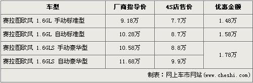 據(jù)經(jīng)銷商處銷售人員介紹,賽拉圖歐風(fēng)全系最高出現(xiàn)1.78萬(wàn)元的優(yōu)惠。賽拉圖歐風(fēng)在售的有4個(gè)車型,入門級(jí)的1.6L手動(dòng)標(biāo)準(zhǔn)版的優(yōu)惠金額上漲到了1.48萬(wàn)元,售價(jià)從廠商指導(dǎo)價(jià)9.18萬(wàn)元降到7.7萬(wàn)元,1.6L豪華版的手動(dòng)版和自動(dòng)版車型都經(jīng)全系最高1.78萬(wàn)元優(yōu)惠后,售價(jià)分別降至8.8萬(wàn)元和9.9萬(wàn)元。銷售人員還介紹,目前賽拉圖歐風(fēng)車型比較緊張,現(xiàn)車數(shù)量一般。