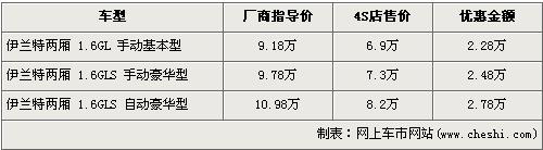 據(jù)經(jīng)銷商處銷售人員介紹,目前購(gòu)買伊蘭特兩廂的消費(fèi)者還可以得到全系7.5折的優(yōu)惠,入門級(jí)車型售價(jià)已經(jīng)不足7萬(wàn)元,消費(fèi)者購(gòu)車后必須在店內(nèi)做一條龍服務(wù)。伊蘭特兩廂先已停產(chǎn),現(xiàn)售的車型均為庫(kù)存車,并且多家經(jīng)銷店的伊蘭特兩廂庫(kù)存車已銷售完,所以很多4S店已經(jīng)不接受此車的預(yù)訂。欲購(gòu)買此車需交訂金3000元約等一周可提車,若錯(cuò)過這批庫(kù)存車,將不會(huì)再買到此車型。