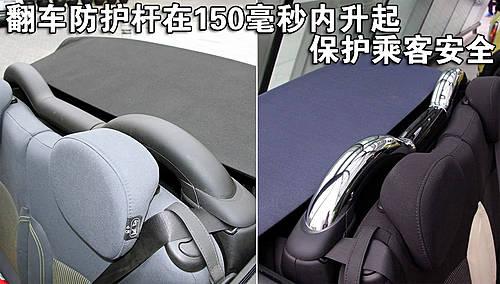 新一代Mini Cooper和Mini Cooper S敞篷版標(biāo)配機電操控翻車防護桿,其隱蔽在后座椅后面。車內(nèi)中央安全電子控制系統(tǒng)在車身可能發(fā)生翻滾的150毫秒內(nèi),可以迅速升起防護桿,從而保證車內(nèi)駕乘人員的安全。