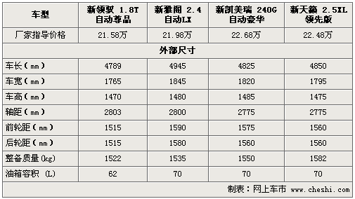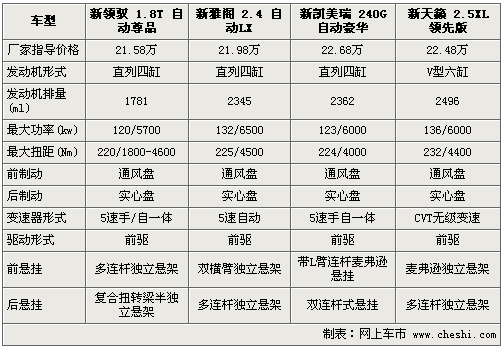 新領(lǐng)馭全系7款車(chē)型已于上月底正式上市,售價(jià)為16.98-30.38萬(wàn)元。除前臉和尾部的全新設(shè)計(jì)外,老款1.8T引擎經(jīng)過(guò)重新調(diào)教最大功率達(dá)120Kw。而在此中級(jí)車(chē)細(xì)分市場(chǎng)中,新雅閣、新凱美瑞和新天籟均占據(jù)著一定的市場(chǎng)份額。下面通過(guò)對(duì)四款價(jià)格相近車(chē)型進(jìn)行詳實(shí)解析,以便為您的購(gòu)車(chē)提供一定的參考。