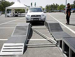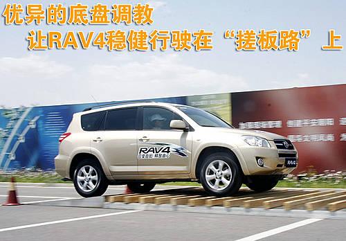 RAV4城市休閑SUV優(yōu)異的底盤調(diào)教,使其行駛在模擬“搓板路”上時,車內(nèi)駕乘人員感覺車兩依然平穩(wěn)舒適。似乎整個RAV4車身懸浮在底盤之上,之間前后懸架在上下調(diào)節(jié)從而適應(yīng)路面狀況。