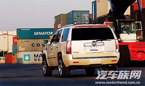 從貨場(chǎng)駛出,一路上被大貨車壓壞的路面坑坑洼洼,這時(shí)MRC主動(dòng)電磁感應(yīng)懸架自動(dòng)調(diào)節(jié)阻尼,高大的車身在顛簸路面上快速前進(jìn),而乘客感到的僅僅是輕微晃動(dòng)。駛離港區(qū),眼前出現(xiàn)筆直的高架公路,輕點(diǎn)油門,車速很快提高到100公里/小時(shí)。這時(shí)從具有AudioPilot噪音補(bǔ)償技術(shù)的Bose音響中流出的音樂依然保持純凈,并未因?qū)挻蟮能嚿砗?85寬胎所產(chǎn)生的些許噪音而受到影響。此外,可能是靈敏的懸架已經(jīng)自動(dòng)調(diào)高阻尼,美國(guó)車特有的忽忽悠悠的如坐船般的感覺卻并沒有出現(xiàn)在我們的凱雷德身上。