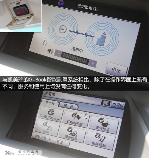 那么Remote Touch信息操作系統(tǒng)能夠控制哪些功能呢?除了常規(guī)的空調(diào)、音響、電話和導航等功能,之前在凱美瑞上亮相的G-Book智能副駕系統(tǒng)也被整合其中,除了在操作界面上略有不同,服務和使用上均沒有任何變化。