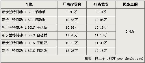 據(jù)北京現(xiàn)代經(jīng)銷商處銷售人員介紹,新伊蘭特悅動(dòng)全系車型優(yōu)惠8000元,經(jīng)優(yōu)惠后全系入門級(jí)的1.6L GL手動(dòng)版的售價(jià)為9.18萬元,是全系的最低價(jià)格。銷售人員還介紹,1.6L車型現(xiàn)車充足,而1.8L車型店內(nèi)現(xiàn)車有限顏色不全,欲購(gòu)買無現(xiàn)車的1.8L車型消費(fèi)者需交納3000元現(xiàn)金,等一周后可提車。