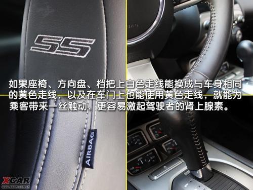 運動設計的三幅式方向盤造型給人力量感,銀色的裝飾很好地提升了這一效果,當然上邊也少不了金屬字樣的SS,同時在方向盤后邊還可以看到采用左減右加式的方向盤換檔撥片。只是尺寸過大的方向盤,實在讓人感覺有些不易操控,對于大多數(shù)美國轎車來說,大號的方向盤似乎已經(jīng)成為了傳統(tǒng),一時很難改過來。