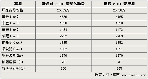 繼新君威2.0和2.4排量車型于去年底推出后,搭載渦輪增壓引擎的新君威2.0T車型也于日前正式上市,售價為25.59萬元。而在此細分市場中無論是動力匹配還是售價,邁騰2.0T無疑是新君威2.0T的主要競爭對手。通過以下詳實對比解析,讓我們一同看看新君威和邁騰2.0T到底有著怎樣的性能差異。