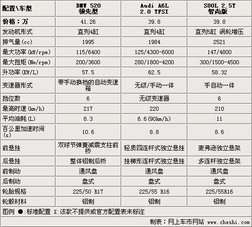 在動(dòng)力配置方面,沃爾沃S80L入門車款就配備了2.5T發(fā)動(dòng)機(jī),因此動(dòng)力性方面會(huì)更占優(yōu)勢;而A6L的2.0T引擎兼顧了低排量和高效動(dòng)力的優(yōu)勢同時(shí)也滿足了政府采購的需求;而寶馬新上市的520li僅僅配備了一臺4缸自然進(jìn)氣引擎,盡管其數(shù)據(jù)在同排量自然進(jìn)氣引擎中算是出色的了,但是比起另外兩個(gè)對手來說動(dòng)力性上確實(shí)有些差距。