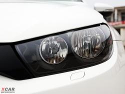 造型犀利的黑底大燈與中網(wǎng)配合的天衣無縫,打造出尚酷特有的前臉造型,既兇狠又有沖勁。遠(yuǎn)遠(yuǎn)望去,仿佛一只匍匐著的貓科猛獸,瞇著雙眼等待著獵物的到來,它不需要有血盆大口,僅憑眼神便可令對手毛骨悚然。只是這對眼神雖然夠犀利,但視力不太好,此次試駕車并沒有裝備氙氣大燈。雖然尚酷2.0TSI的售價還未公布,但參考5代GTI的價格來看,我們還是希望這款接近40萬元售價的跑車可以將配置提高一些。
