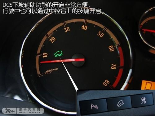 DCS下坡輔助功能的開啟非常的方便,即使在行駛中也可以通過(guò)中控臺(tái)上的按鍵開啟。不過(guò),這項(xiàng)功能由于是通過(guò)車輛本身的剎車系統(tǒng)進(jìn)行車速控制,如果是在較陡的坡上就會(huì)顯得車速過(guò)快,每當(dāng)車速超到10公里/每小時(shí),剎車系統(tǒng)就會(huì)自動(dòng)工作,速度降下來(lái)后,剎車系統(tǒng)又會(huì)完全解除,緊接著車速又達(dá)到車速上限,剎車再次啟動(dòng),連續(xù)的剎車使輪胎多次出現(xiàn)打滑,于是我們又不得不轉(zhuǎn)由人工均勻的控制剎車來(lái)保持穩(wěn)定的車速。