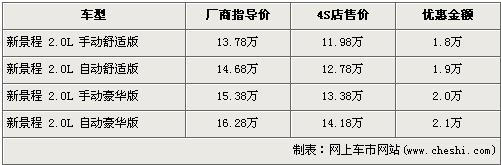 根據(jù)經(jīng)銷商處銷售人員介紹,“大嘴”新景程2.0L手動舒適版現(xiàn)金優(yōu)惠1.8萬元,經(jīng)優(yōu)惠后售價下降到了11.98萬元,已不足12萬。最高配的2.0L自動豪華版車型經(jīng)全系的最高2.1萬元優(yōu)惠后,售價降到了14.18萬元。銷售人員還表示,目前店內(nèi)現(xiàn)車充足,顏色也全,消費者自由挑選的空間變得更加便利,更加自由。
