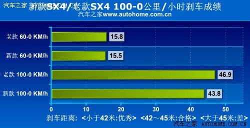剎車部分大家關(guān)注的焦點(diǎn),畢竟換上了四輪盤剎,其成績應(yīng)該有所提升。經(jīng)過測試,SX4剎車成績?yōu)?3.8米,通過對比就可以發(fā)現(xiàn),這一成績比起使用鼓剎的老款車型的確有不小的提升。