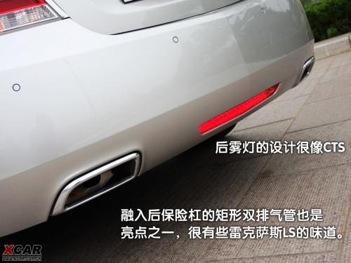 如果車頭的似曾相識(shí)讓你感到無趣,那么轉(zhuǎn)到車尾你就會(huì)眼前一亮。新君越的尾部顯然比車頭更能抓人眼球,兩排LED尾燈組科技感十足,夜間的照明效果也更好,類似昂科雷的鍍鉻金屬包邊也出現(xiàn)在尾燈上,不過所不同的是不再是奢侈的大面積包圍而只是上面有鍍鉻金屬勾勒出類似燈眉的效果。融入后保險(xiǎn)杠的矩形雙排氣管也是亮點(diǎn)之一,很有些雷克薩斯LS的味道,甚至讓我有些懷疑這種精致設(shè)計(jì)是不是出自于眼前這輛美國車。