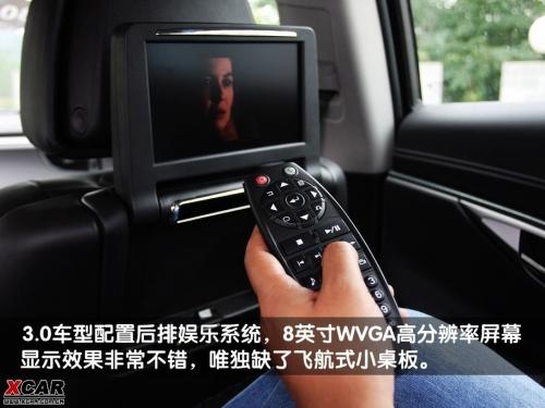 同樣只能在3.0車(chē)型上找到的配置還有后排娛樂(lè)系統(tǒng)和三區(qū)空調(diào),其兩個(gè)后排液晶屏固定在前排椅背上,不用的時(shí)候可以完全折疊起來(lái),不影響美觀。由于采用了8英寸的WVGA高分辨率屏幕,其顯示效果非常不錯(cuò)。如果搭配AV輸入和隱藏的230V電源使用,在后排玩游戲機(jī)絕對(duì)不失為商務(wù)精英們忙里偷閑的絕佳休閑方式。