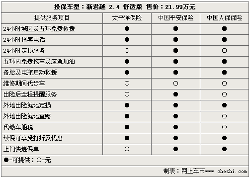 消費者在購買車輛保險獲得車輛安全保障的同時,各保險公司還提供了額外的免費服務(wù)項目。對于經(jīng)常在城區(qū)行駛的消費者,選擇提供五環(huán)內(nèi)車輛故障免費拖車以及應(yīng)急送油服務(wù)的保險公司則能帶來許多便利;若消費者喜歡經(jīng)常外出跨省自駕游,則選擇可異地定損、理賠的保險公司。各保險公司提供了豐富的附加服務(wù),使得消費者有了更多樣的選擇,相較而言中國人保提供的人性化服務(wù)并不是很多。比較遺憾的是這三家保險公司在維修期間均沒有為消費者提供代步車的服務(wù)。