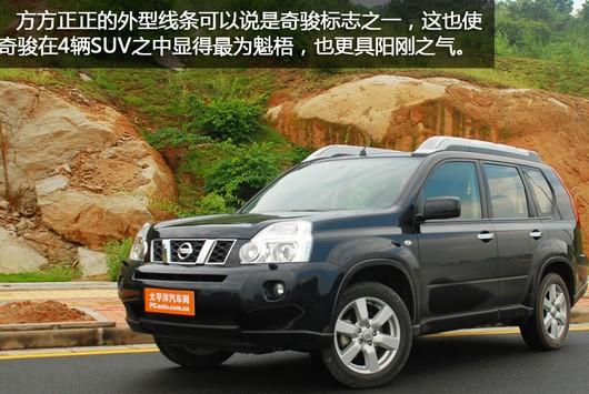 奇駿的方方正正的外型線條已經(jīng)是它的標(biāo)志之一,從上一代車型上沿用下來的設(shè)計(jì)元素使得第二代奇駿也很富越野的風(fēng)格,F(xiàn)款車型的鍍鉻大型中網(wǎng)以及梯形的大燈,使奇駿車頭相當(dāng)?shù)木哂袣鈩。同樣是因(yàn)榉秸耐庑途條,令奇駿在4輛SUV之中顯得最為魁梧,也更具陽剛之氣,所以我估計(jì)奇駿起碼有8成都是男性車主,不知道是否大家同意我的看法?