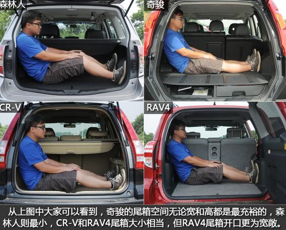 除了特別的中控臺(tái)設(shè)計(jì),RAV4上可前后滑動(dòng)調(diào)節(jié)和5角度靠背調(diào)節(jié)的后排座椅,也是同場對(duì)手中靈活度最高的。除了是因?yàn)檐噹嘏_(tái)偏高而令腿部屈度較大之外,RAV4的后排乘坐感絕對(duì)是4車之冠,各種身型的乘客都能找到非常舒服的坐姿。