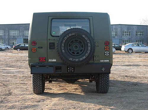 其外形設(shè)計(jì)的目標(biāo)原則是強(qiáng)調(diào)在繼承中發(fā)展的思路,實(shí)現(xiàn)突破創(chuàng)新和現(xiàn)代感的全新造型;強(qiáng)調(diào)具有中國文化底蘊(yùn),不與國內(nèi)、國外車型雷同;在保持傳統(tǒng)特色的同時(shí),來強(qiáng)化現(xiàn)代感。其以粗獷、簡潔、威武的造型,展現(xiàn)了我軍威武之師、現(xiàn)代軍隊(duì)的風(fēng)貌和現(xiàn)代“硬派”越野車的風(fēng)格。外形個(gè)性鮮明,車身外觀緊湊而流暢,前臉造型模仿狼眼外眼角上揚(yáng)、怒視前方的表情,與前保險(xiǎn)杠融為一體的狼牙造型,將野性、威猛的氣勢(shì)演繹得淋漓盡致。篷頂后部稍向下沿伸,恰似豹子起跑前的后坐姿勢(shì),突出了整車的動(dòng)感與強(qiáng)悍。