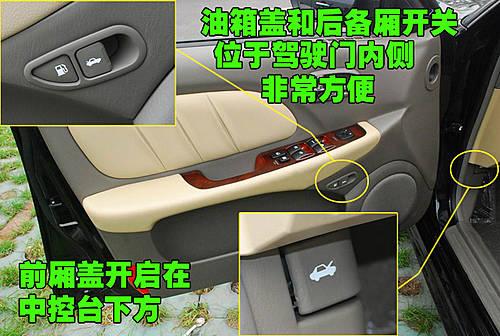 北京現(xiàn)代名馭在前排左側(cè)車門內(nèi)側(cè)設(shè)置了油箱蓋和后備廂的開啟按鈕,傳統(tǒng)的設(shè)計都放在剎車系統(tǒng)部位,這樣更加方便平常開啟,前艙蓋的開啟按鈕仍設(shè)置在中控臺左側(cè)下方。
